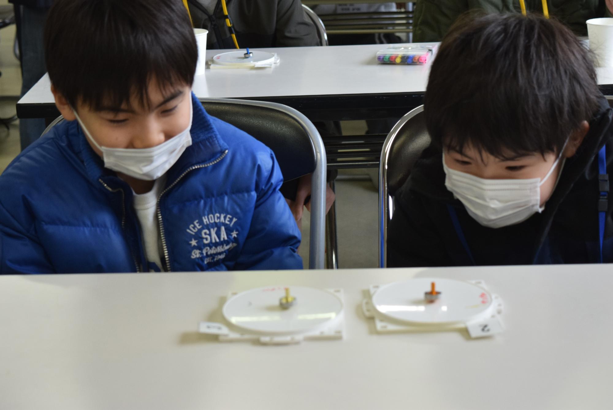 作ったコマでトーナメント戦や何分回せられるかを競うタイムトライアルも行いました。タイムトライアルでは4分59秒が最長記録でした。